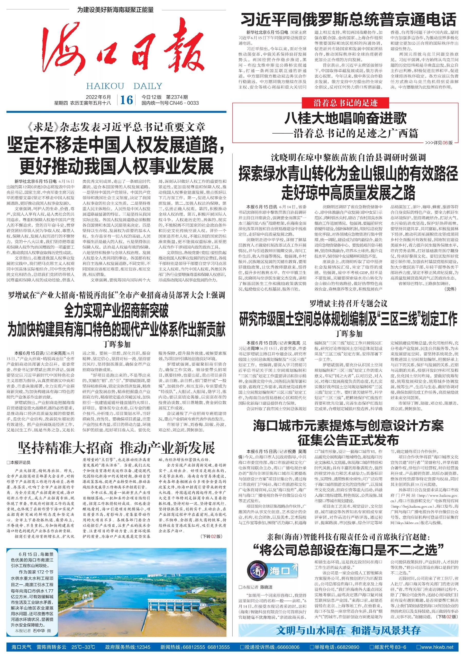 图片来源:《海口日报》2022年6月16日 01版:要闻