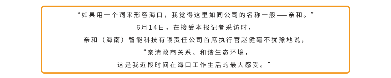 “海口作为省会城市,我们体验到这里的速度和温度,在今后的发展中,公司不仅要乘着自贸港建设的东风扬帆起航,更希望能助力海口数字经济产业的发展,为海南自贸港建设贡献一份力量。”赵健信心十足地说道。