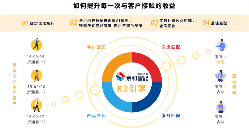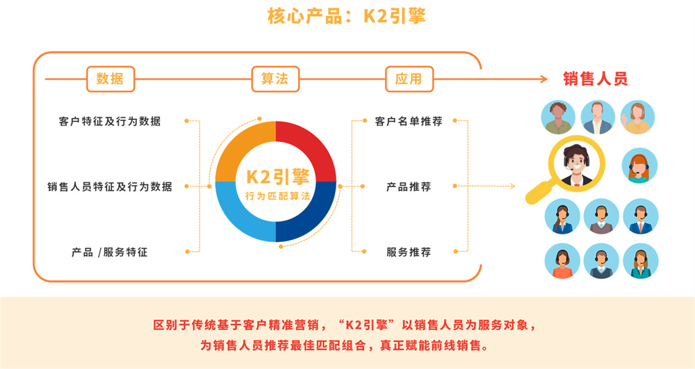 亲和智能自主研发的一系列独创算法(“K2引擎”)可以优化企业与其客户之间的互动,结合我们在银行、保险及电信运营商等行业拥有的丰富经验,为合作企业在业绩提升及服务营销一体化等场景提供卓越的解决方案。